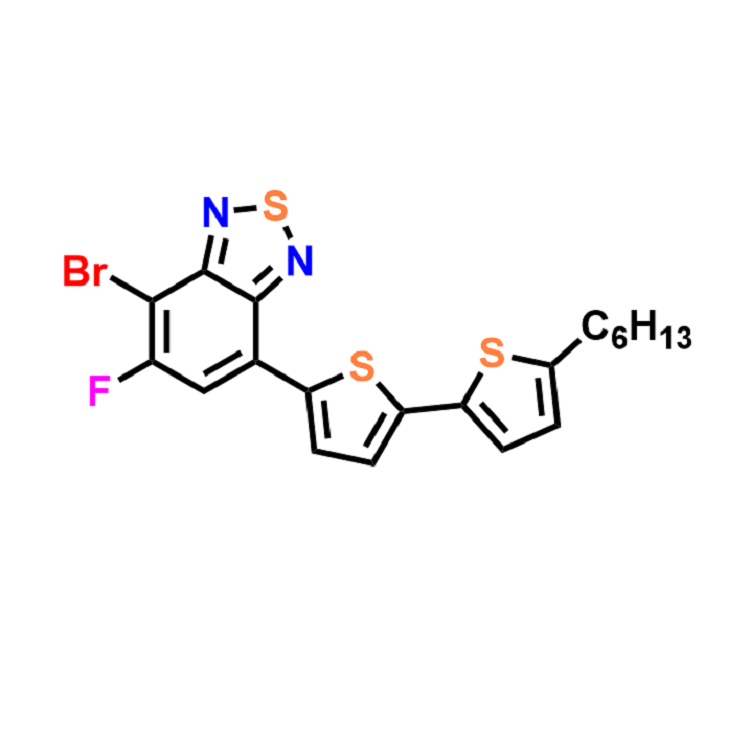 英文別名:4-bromo-5-fluoro-7-(5'-hexyl-[2,2'-bithiophene]-5-yl)benzo[c][1,2,5]thiadiazole;4-bromo-5-fluoro-7-(5'-hexyl-[2,2'-bithiophen]-5-yl)benzo[c][1,2,5]thiadiazole; 4-bromo-5-fluoro-7-(5'-hexyl-(2,2'-bithiophen)-5-yl)-2,1,3-benzothiadiazole; 4-Bromo-5-fluoro-7-(5'-hexyl-[2,2'-bithiophen]-5-yl)benzo[c][1,2,5]thiadiazole